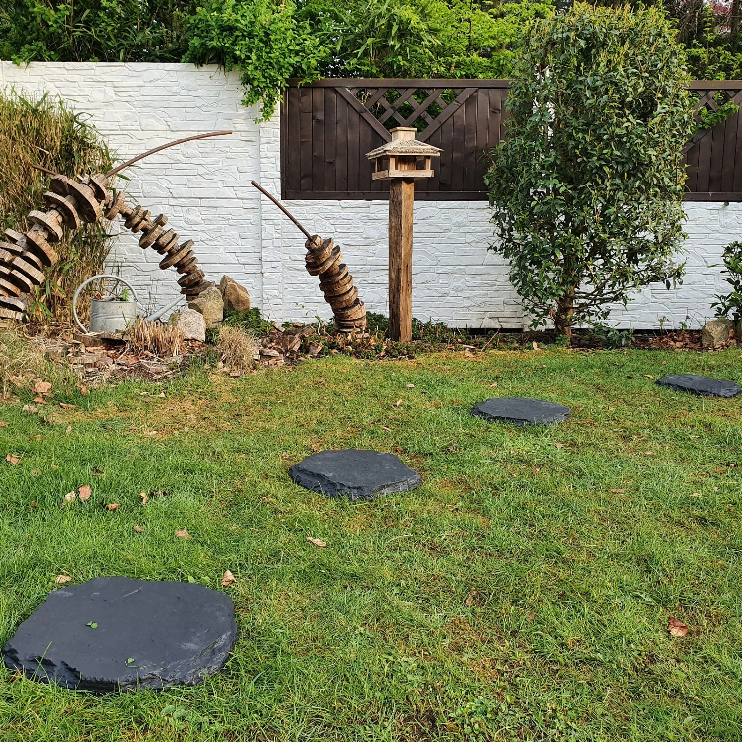 Dieser Trittstein vom Typ A von Kölle in der Farbe anthrazit ist aus hochwertigem, feinporigem C-85-Beton in der natürlichen Schiefersteinoptik gefertigt. Der Trittstein überzeugt durch eine angenehme Haptik und aufwendige Oberflächenverarbeitung. Dank einer Armierung ist der Trittstein bruchfest und langlebig.