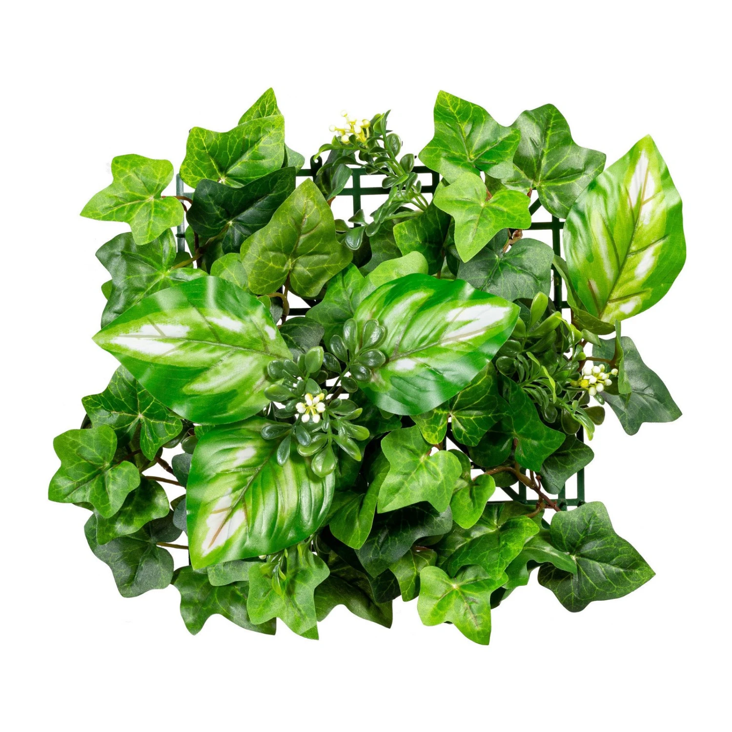 Mit der effektvollen künstlichen Blättermatte lassen sich im Wohnzimmer und Office exotische grüne Akzente setzen oder ein naturnaher Sichtschutz gestalten. Diese Blättermatte mit Philodendron- und Efeublättern ist der Natur bis ins kleinste Detail nachempfunden, langlebig und erfordert kaum Pflege.