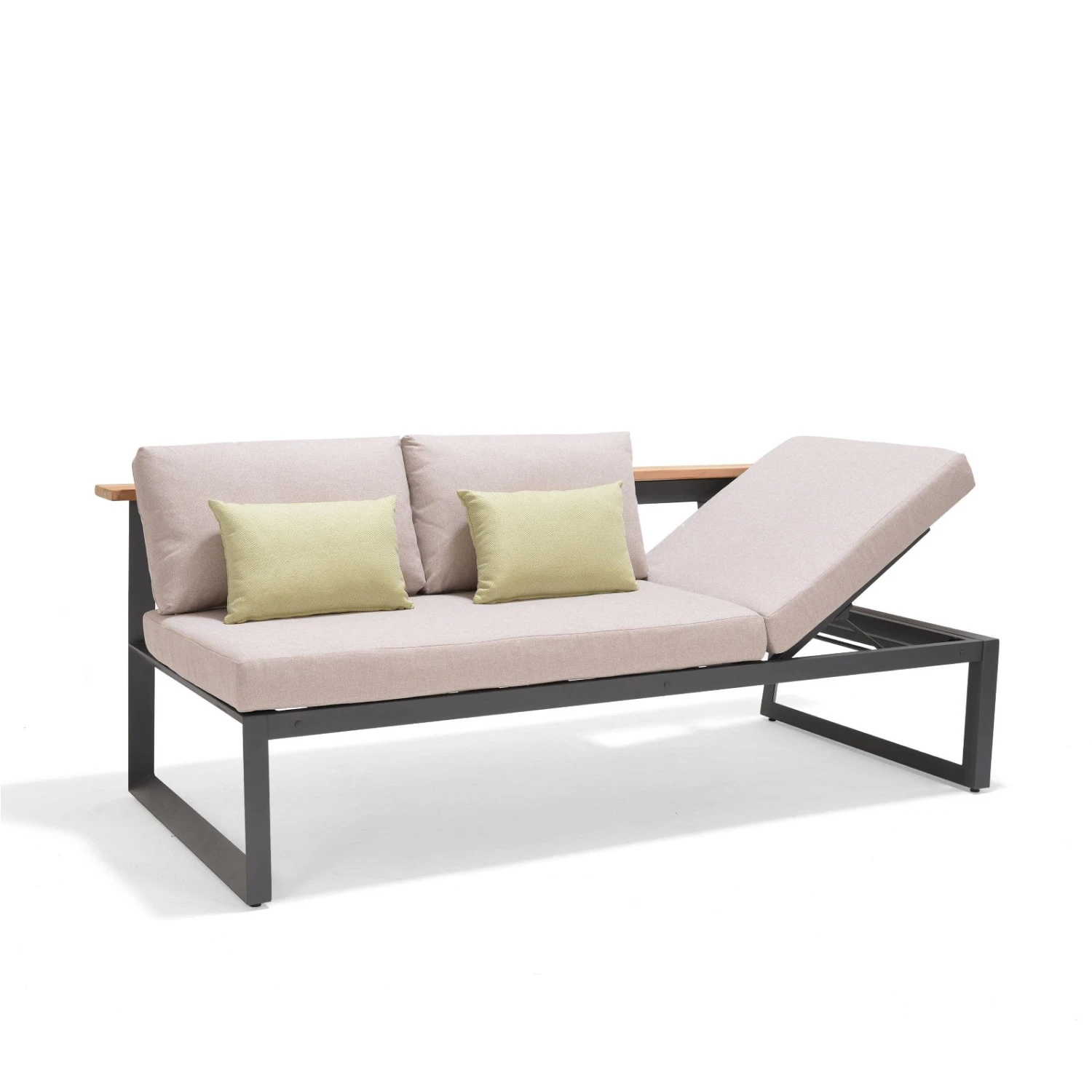 Genießen Sie einen Blick ins Grüne und profitieren Sie dank der Dining-Bank ‚Jimmy‘ von ausgezeichnetem Sitzkomfort. Der Dreisitzer im angesagten Industrial Style überzeugt mit einem höhenverstellbaren Rückenteil und ist in der Mitte bis zu einem Gewicht von 160 Kilogramm belastbar. Die witterungsbeständigen Auflagen mit Bezug aus Olefin sind im Lieferumfang inklusive.