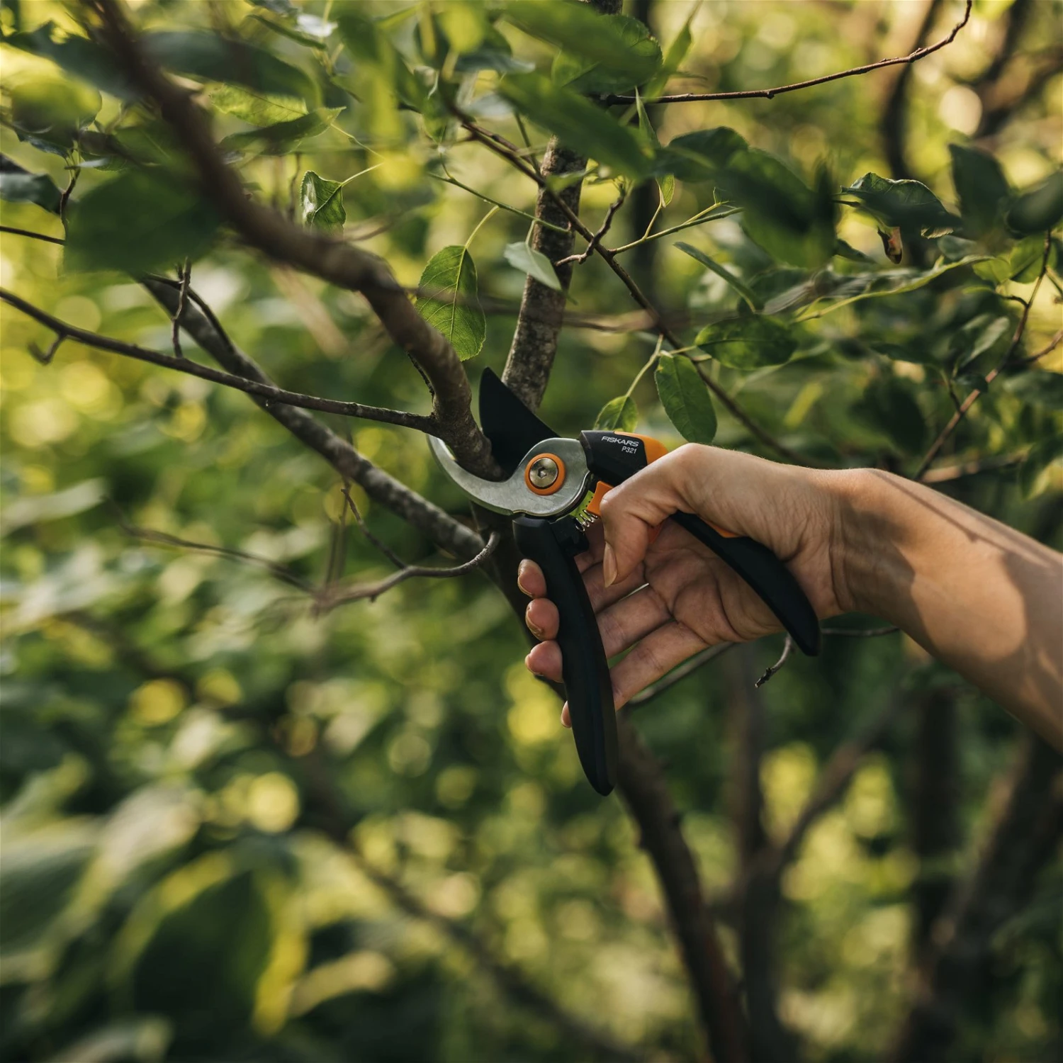 Zu den Pluspunkten der Bypass-Schere ‚Solid‘ von Fiskars zählen eine antihaftbeschichtete obere Klinge für müheloses Schneiden, ergonomisch designte Handgriffe mit SoftGrip und ein handlicher Verriegelungsmechanismus für sichere Aufbewahrung. Die Bypass-Gartenschere ‚Solid‘ schneidet frisches Holz mit einem Durchmesser von bis zu 20 Millimetern sauber und präzise.