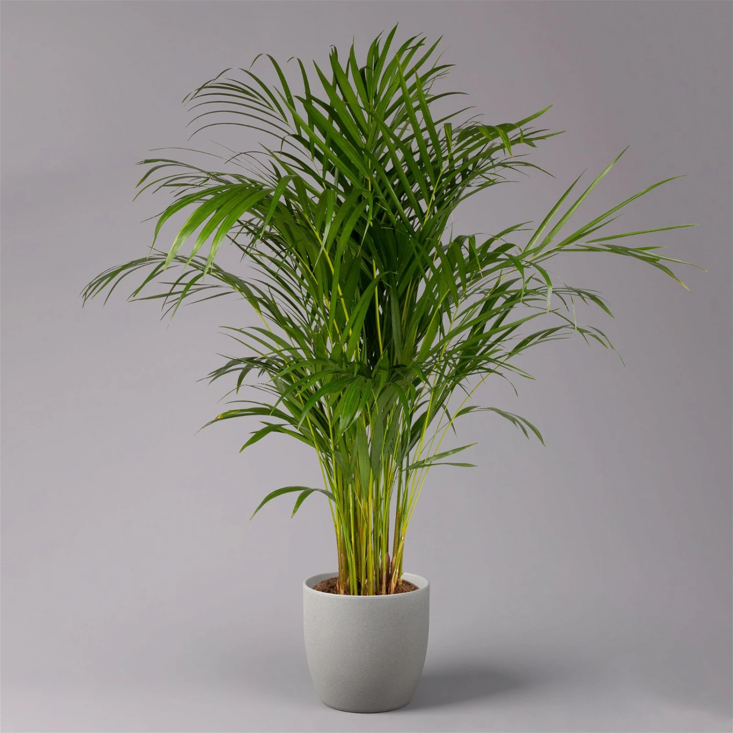 Neben ihrer prachtvollen Erscheinung punktet die Goldfruchtpalme mit einem hohen Nutzwert: Die Wedel sorgen für ein gesundes Raumklima, indem sie Staub und Schadstoffe aus der Luft filtern. Die Goldfruchtpalme kommt in einem 21 cm großen Topf zu Ihnen nach Hause.