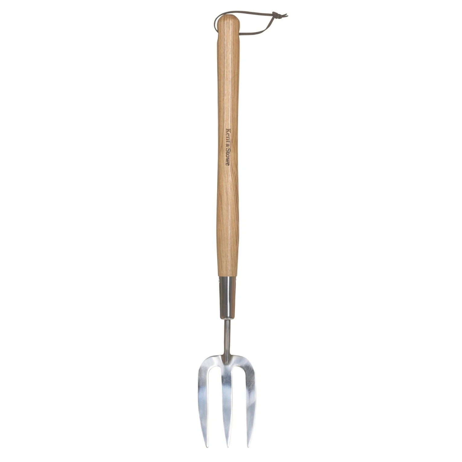 Entfernen Sie ungewünschtes Gewächs wie Unkraut und Beikräuter aus Ihren Beeten, zwischen Pflanzreihen, in schmalen Ritzen oder an anderen Stellen ganz einfach mit der Handgabel von Kent & Stowe. Durch den Griff aus Holz liegt das Gerät auch nach längerer Nutzung noch angenehm in der Hand und die Zinken aus Edelstahl sind besonders langlebig.