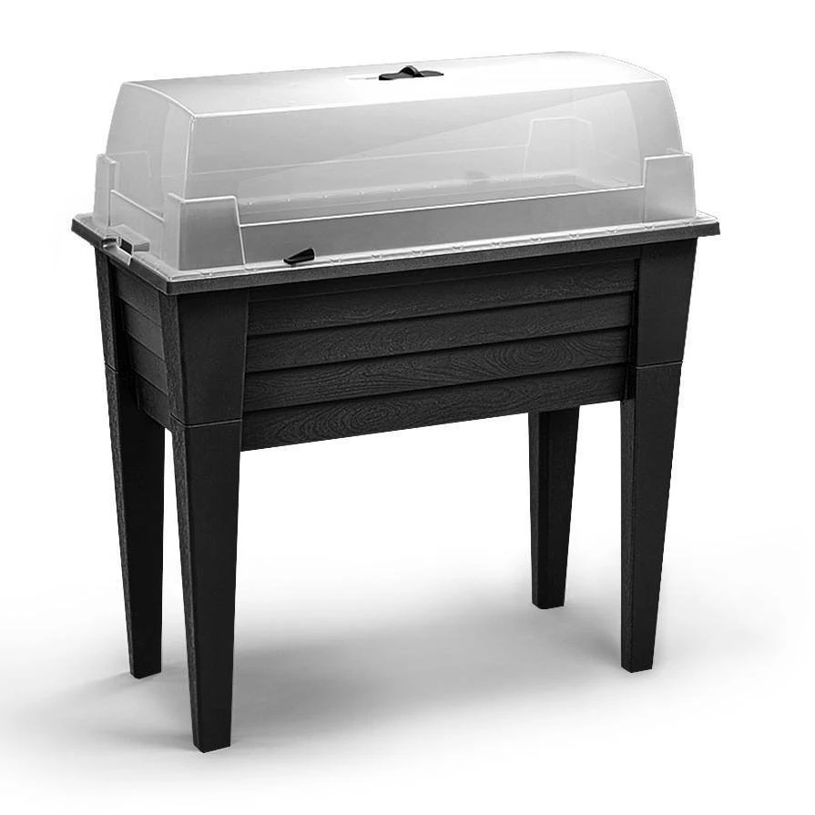 Pflanzkasten aus witterungsbeständigem Kunststoff (Polypropylen) zum Anziehen und Anbauen von Kräutern, Gemüsepflanzen, Blumen, etc. Die ergonomische Arbeitsfläche des Hochbeets für den Garten, die Terrasse oder den Balkon erleichtert die Pflanzarbeiten und die Pflanzenpflege. Die belüftbare Abdeckhaube sorgt für bestes Klima und trägt dadurch zu einem schnelleren Pflanzenwachstum bei.