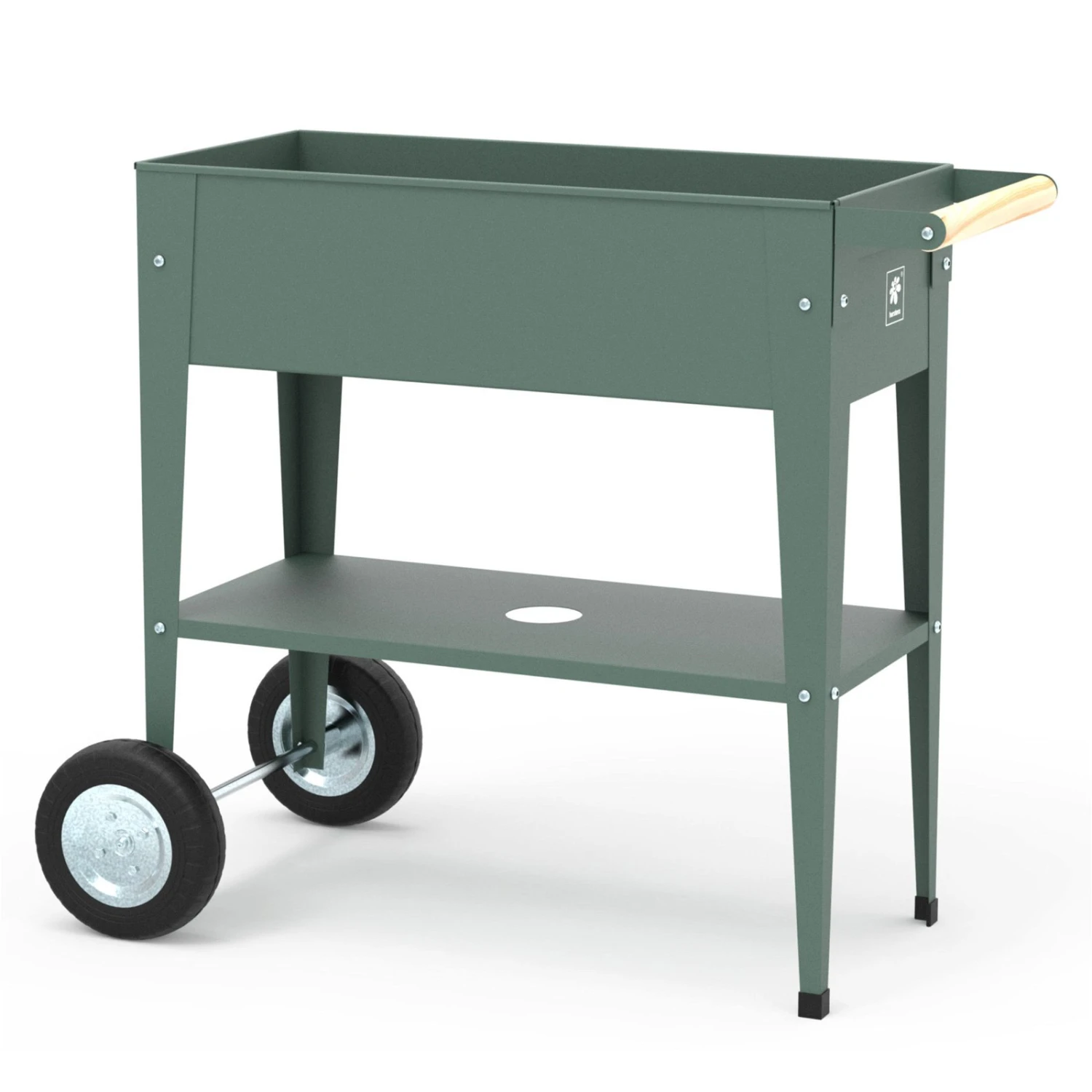 Mit dem ‚Urban Garden Trolley‘ aus robustem Stahl steht Ihnen ein praktischer mobiler Pflanztisch zur Verfügung, den Sie auf Wunsch auch als Pflanzkasten für die Anzucht von Gemüse und Gartenkräutern einsetzen können. Das Modell überzeugt durch eine stabile Konstruktion mit großen, leichtgängigen Rädern und seine ergonomische Höhe für ermüdungsfreies Arbeiten.