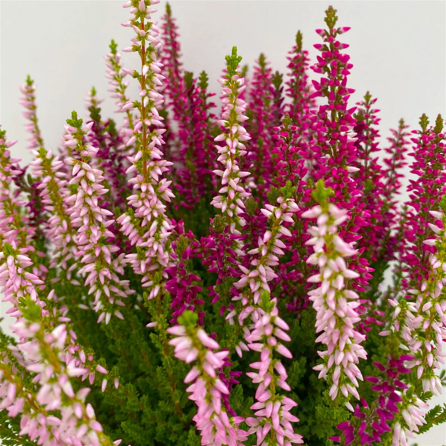 Die dreifarbigen Kölle’s Beste Knospenheiden ‚Trio‘ erfreuen mit einer langen Blütezeit von Juli bis November/Dezember. Da die Blütenknospen geschlossen bleiben, kann die Knospenheide Regen und nächtlichen Minustemperaturen gut standhalten und blüht bis in den Winter.