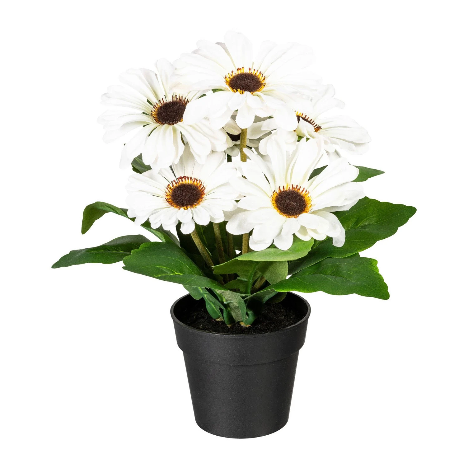 Auf Ihrem Arbeitstisch, Sideboard oder auf einer Fensterbank macht diese künstliche Gerbera mit sechs großzügig dimensionieren Blüten in Creme eine gleich ausgezeichnete Figur. Die Kunstpflanze ist auf den ersten Blick von einer echten Gerbera nicht zu unterscheiden und erfordert dabei keine aufwendige Pflege.