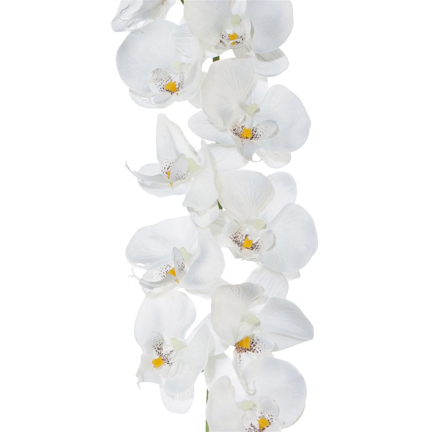 Verleihen Sie Ihrer Einrichtung mit dieser imposanten Phalaenopsis-Girlande eine exotische Note. Die künstliche Schmetterlingsorchidee präsentiert sich in leuchtendem Weiß und ist auf den ersten Blick von einer lebenden Orchidee nicht zu unterscheiden. Dabei erfordert die Kunstpflanze kaum Pflege und gedeiht sogar in unbeheizten, schlecht ausgeleuchteten Räumen.