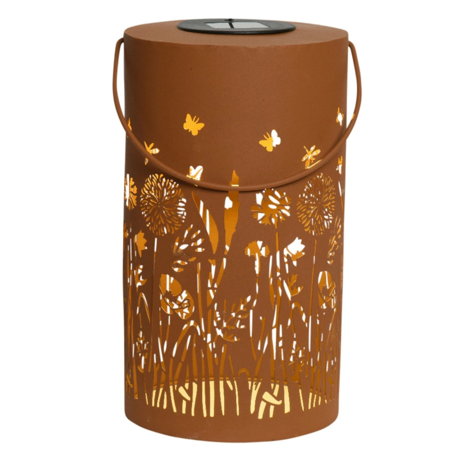 Im Dunkeln spendet diese LED-Laterne aus Metall ein augenfreundliches warmweißes Licht für Ihre behaglichen Abende outdoor. Aber auch tagsüber begeistert die solarbetriebene Gartenlaterne mit ihrem sympathischen rustikalen Design und wertet Ihr Outdoorkonzept auf. Die Laterne ist vom Stromnetz unabhängig und dank eines praktischen Handgriffs mobil.