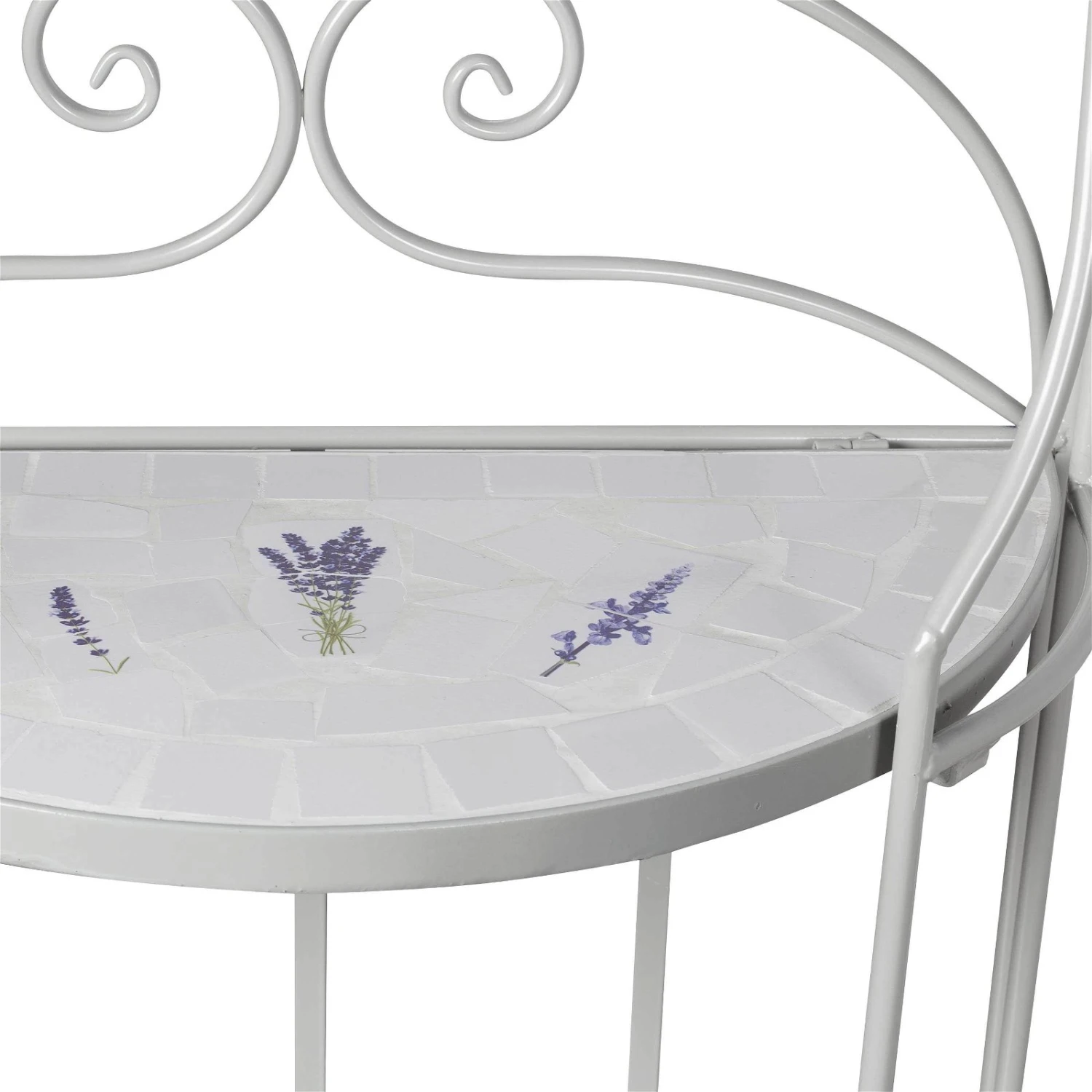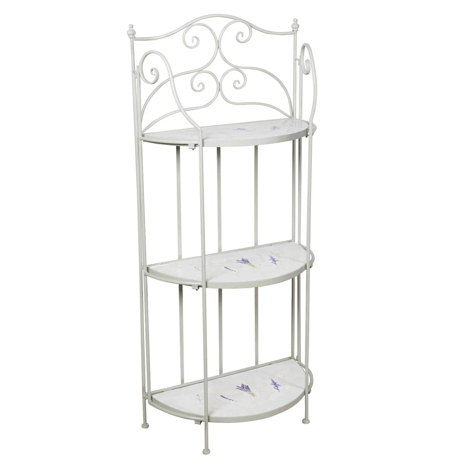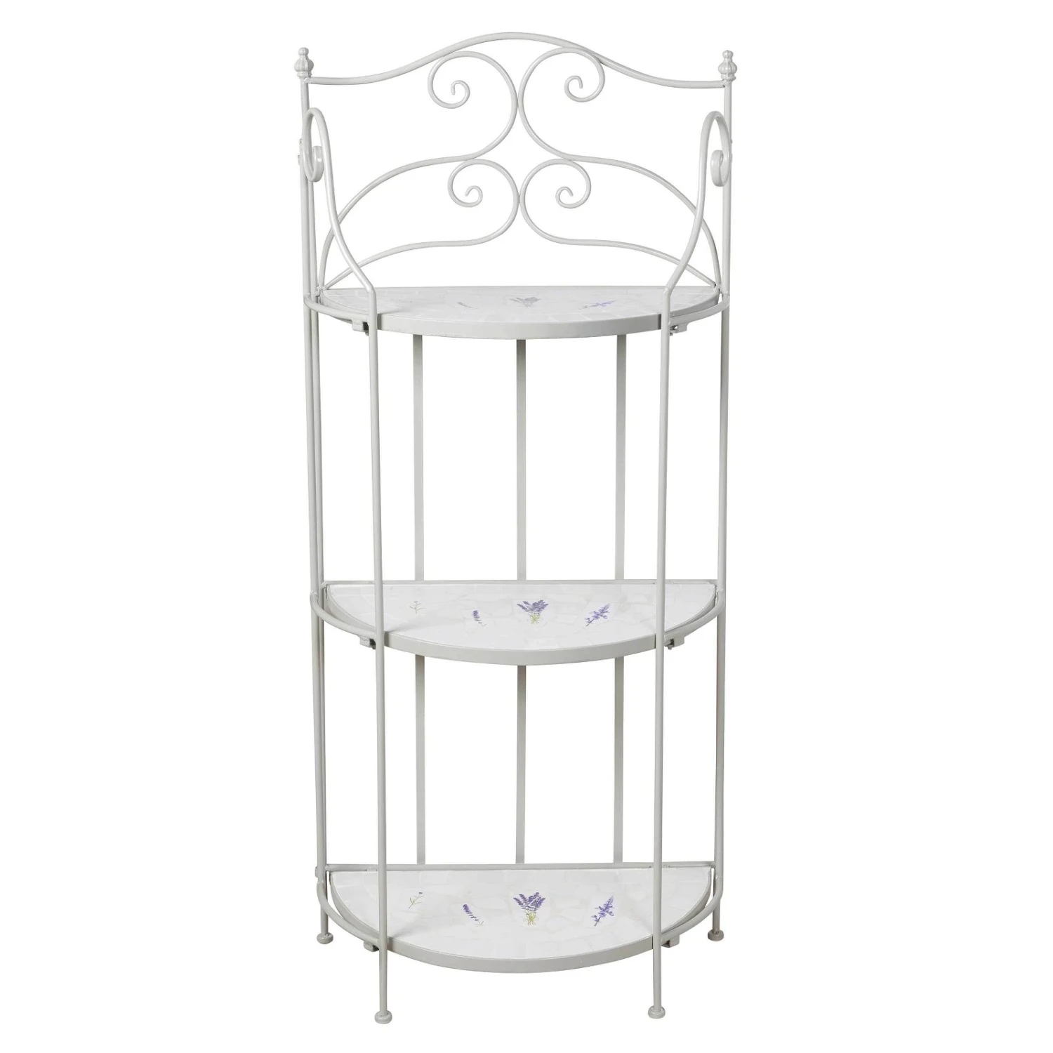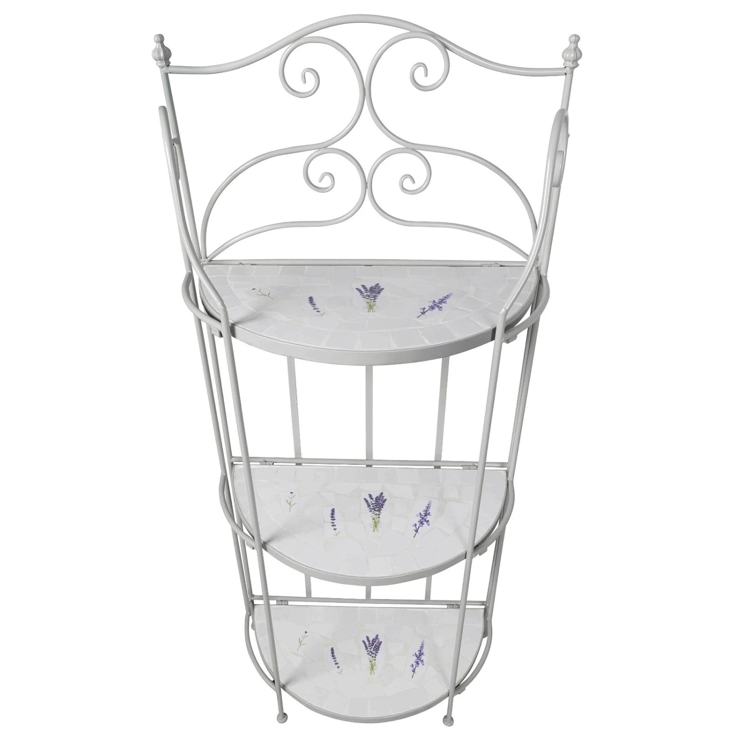 Dieses formschöne und funktionelle Pflanzregal avanciert im Outdoorbereich oder in Ihrem Wintergarten zu einem romantischen Hingucker. Das Regal Lille ist mit handgearbeiteten Lavendelfliesen aufwendig dekoriert, dabei ist jedes Möbelstück ein Unikat. Der gebogene Eisenrahmen verleiht dem Pflanzregal ein Plus an Stabilität. In einem rund 130 Zentimeter hohen Regal finden mehrere Pflanztöpfe und kleinere Kübel mit Ihren Lieblingsgewächsen Platz. Dazwischen lassen sich Figuren und Vasen gekonnt in Szene setzen. Beachten Sie bitte, dass das Mosaik-Regal Lille am besten in überdachten Räumen zu nutzen ist. Befreien Sie das Regal von Verunreinigungen mit einem weichen, feuchten Putztuch und nutzen Sie nur schonende Reinigungsmittel.