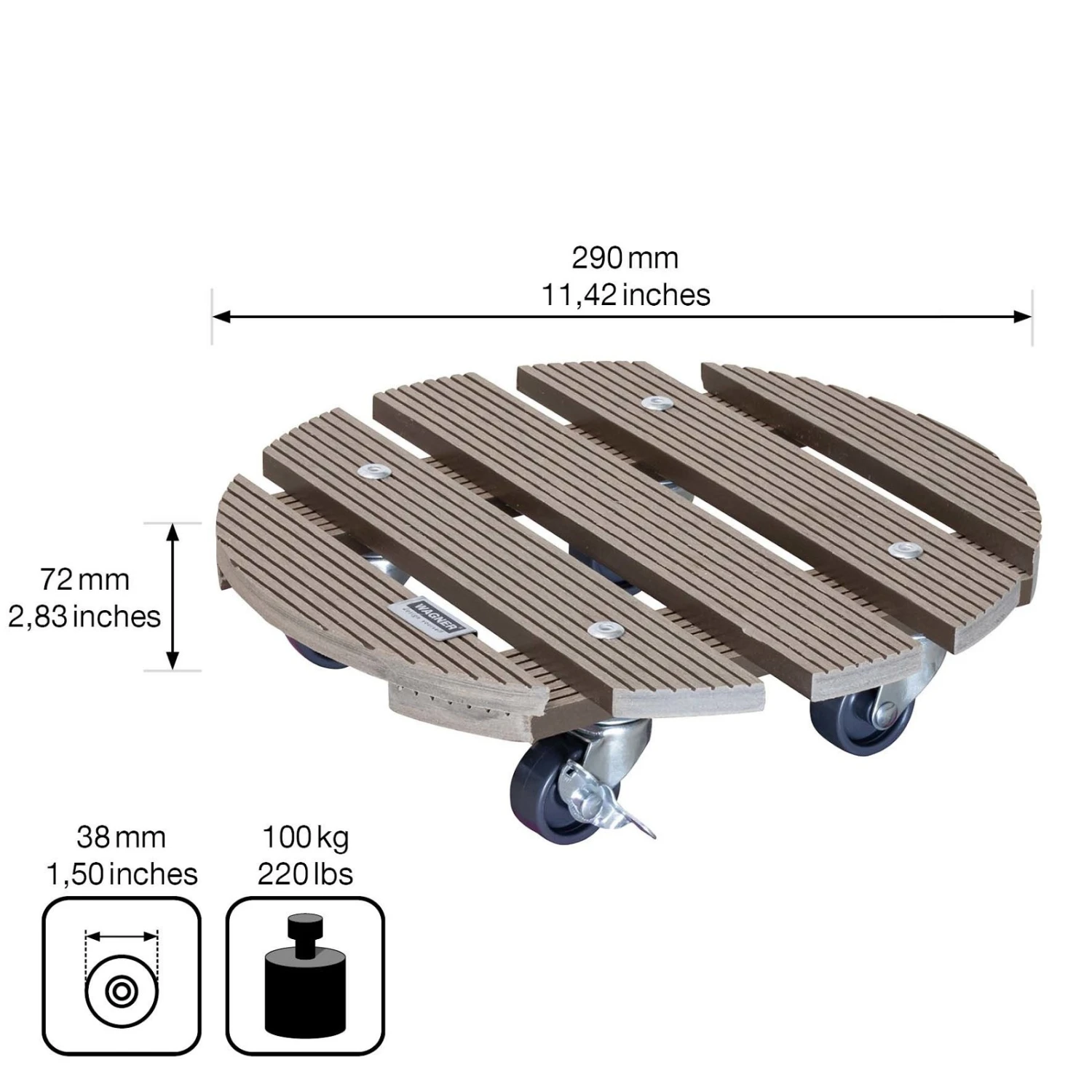 Multi Roller WPC, Tragkraft 100 Kg, Taupe, Ca. 7 X 29 X 29 Cm