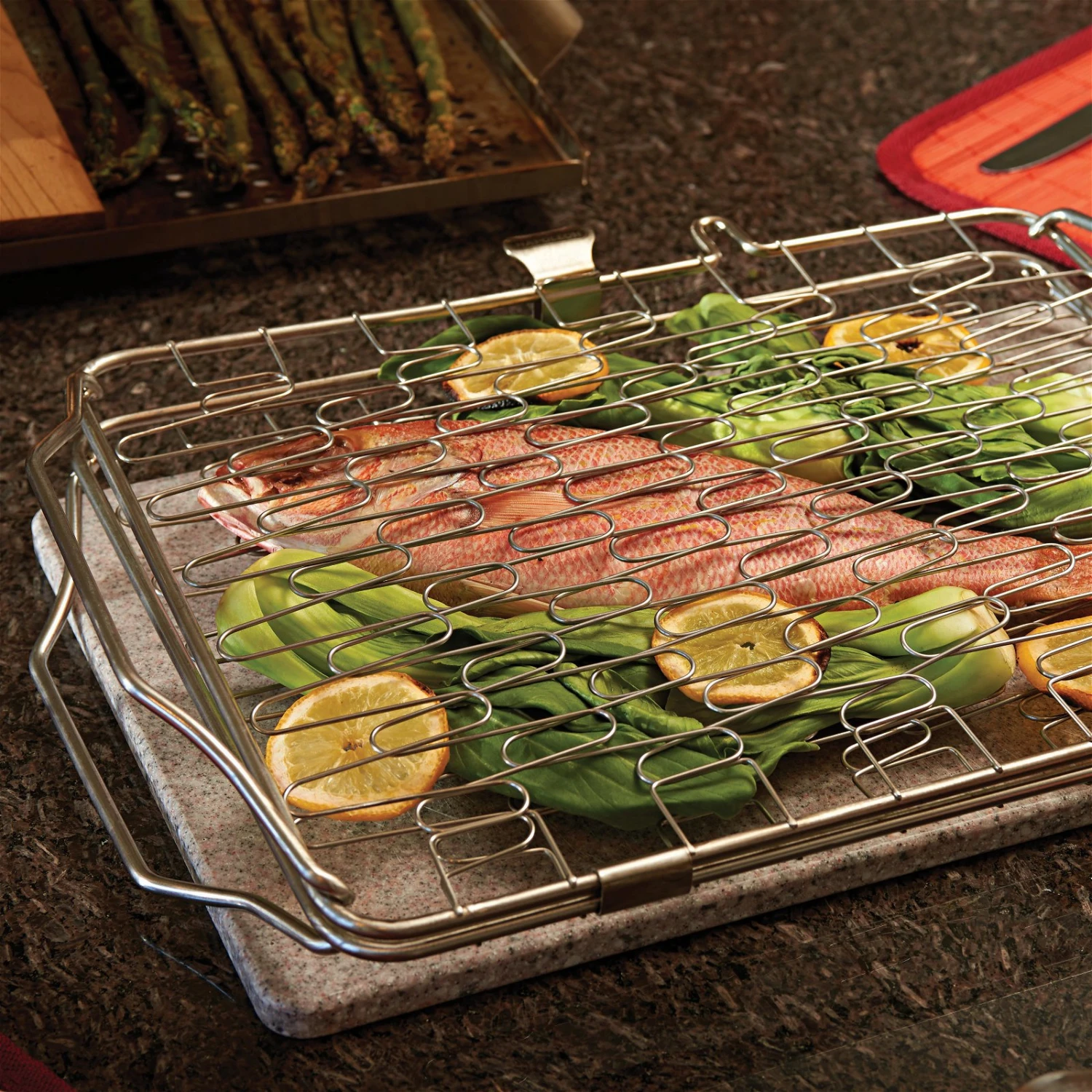 Flexibles Federn-Design für Elastizität hält Speisen zwischen den zwei Seiten und ist exzellent geeignet für die Zubereitung von Lachs, Gemüse, etc., aufgrund der Bügel an beiden Seiten ist indirekts Grillen möglich. Spülmaschinenfest, passend für fast alle Grillmodelle. Die Lieferung erfolgt meist innerhalb von 3 Werktagen.