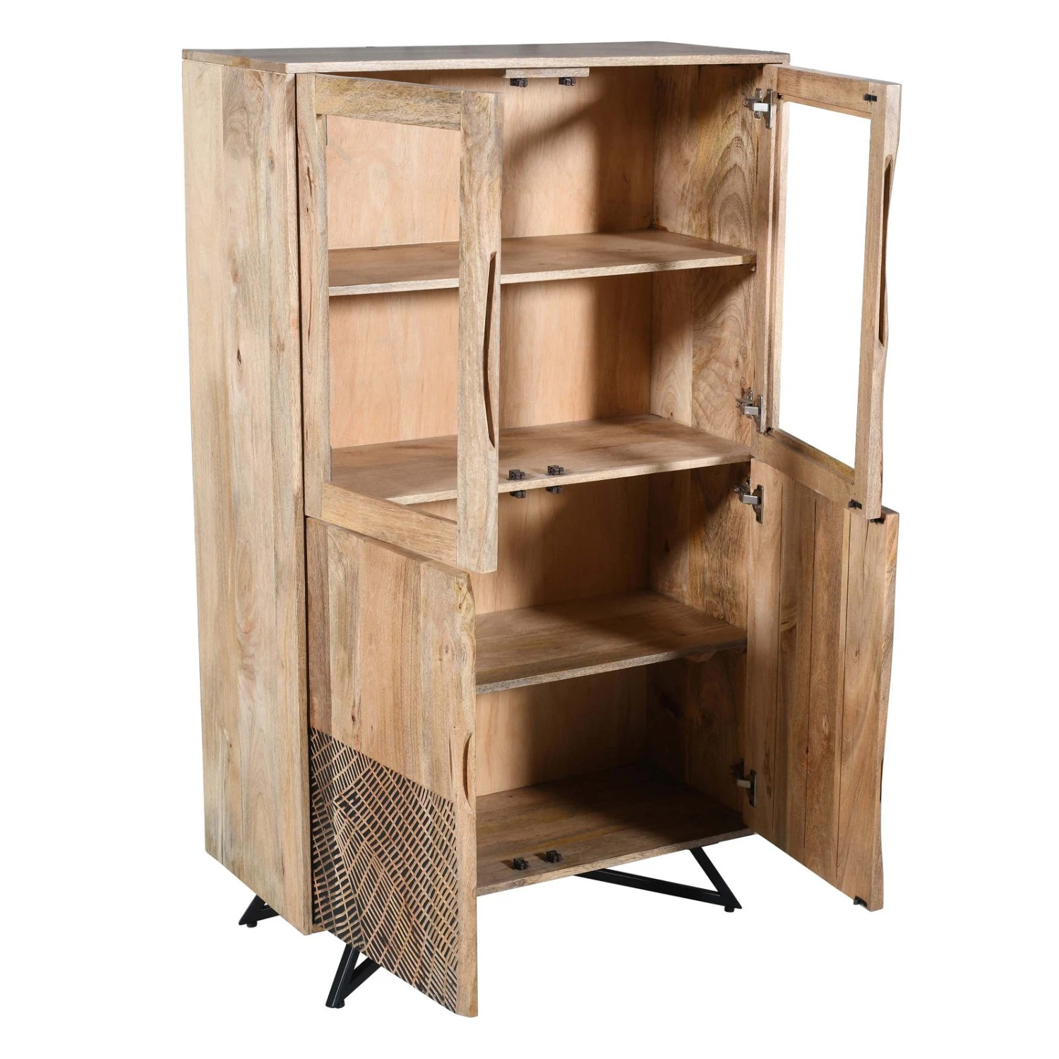 Jedes Highboard aus der Serie NEPTUN von Wolf Möbel wird individuell mit viel Liebe zum Detail handgefertigt. Das Möbelstück lässt die natürliche Textur von exotischem Mango hervorragend zur Geltung kommen. Dabei überzeugt das Highboard mit zwei Glas- und zwei Holztüren sowie mehreren Ablagen als ein richtiges Stauraumwunder.
