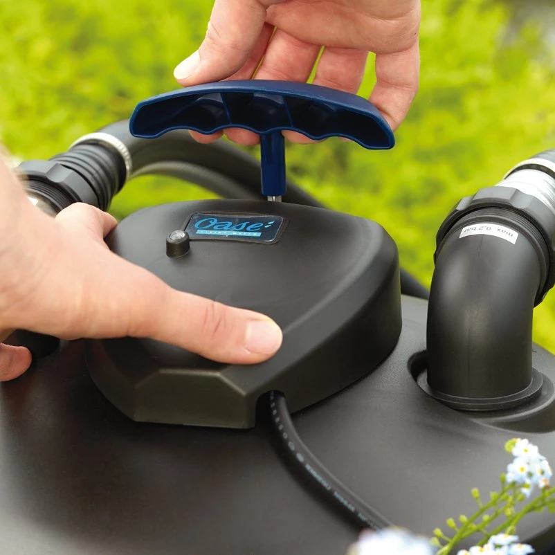 Gereinigt wird der leistungsstarke Teichfilter ganz einfach von außen. Eine gut sichtbare Anzeige informiert Sie, sobald eine Reinigung notwendig ist.