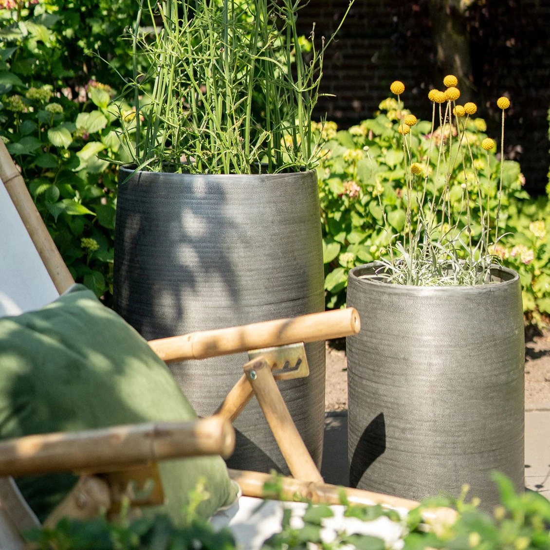 Das imposante Pflanzgefäß ‚Rowen‘ von Kölle fasst rund 90 Liter und besticht durch seine schlanke Form. Dieses aus Leichtmetall Aluminium handgefertigte Pflanztopf fasziniert mit seiner in aufwendiger Handarbeit aufgetragenen Oberflächenstruktur in edlem Silber. Mit jedem Pflanztopf ‚Rowen‘ erhalten Sie somit ein unverwechselbares Unikat für ein individuelles Gestaltungskonzept im Innen- oder Außenbereich. Dieser Pflanztopf verbindet einen luxuriösen Look mit hoher Funktionalität und zeigt sich unempfindlich gegenüber jeglichen Witterungseinflüssen. Insofern spricht nichts gegen den ganzjährigen Einsatz im Außenbereich. Seine schlanke Form verleiht dem Pflanztopf einen dynamischen Touch und liefert Inspirationen für kreative Bepflanzungsideen. Bestücken Sie den ‚Rowen‘ zum Beispiel mit einem Arrangement aus Hängebegonien, Efeu und Ziergräsern, um ein abwechslungsreiches Bild entstehen zu lassen