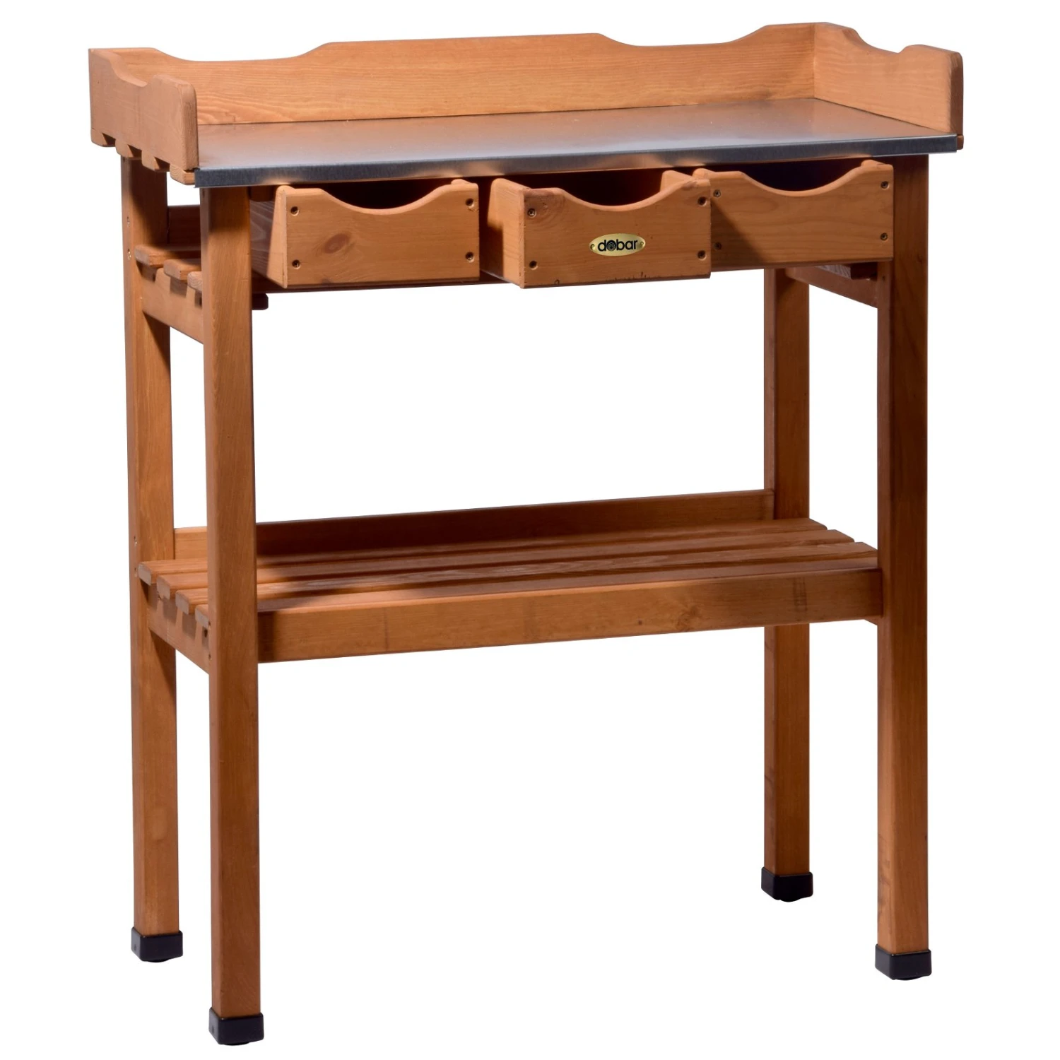 Wenn Sie Ihre Pflanzen umtopfen, die Aussaat im Gewächshaus vorbereiten oder zum Beispiel die Setzlinge pikieren müssen, dann ist dieser praktische Pflanztisch genau das Richtige für Sie. Die Werkbank aus massivem FSC®-zertifiziertem Kiefernholz überzeugt mit ergonomischer Höhe sowie bietet in den Schubladen und der Ablage Platz für Gartenwerkzeug und Utensilien.