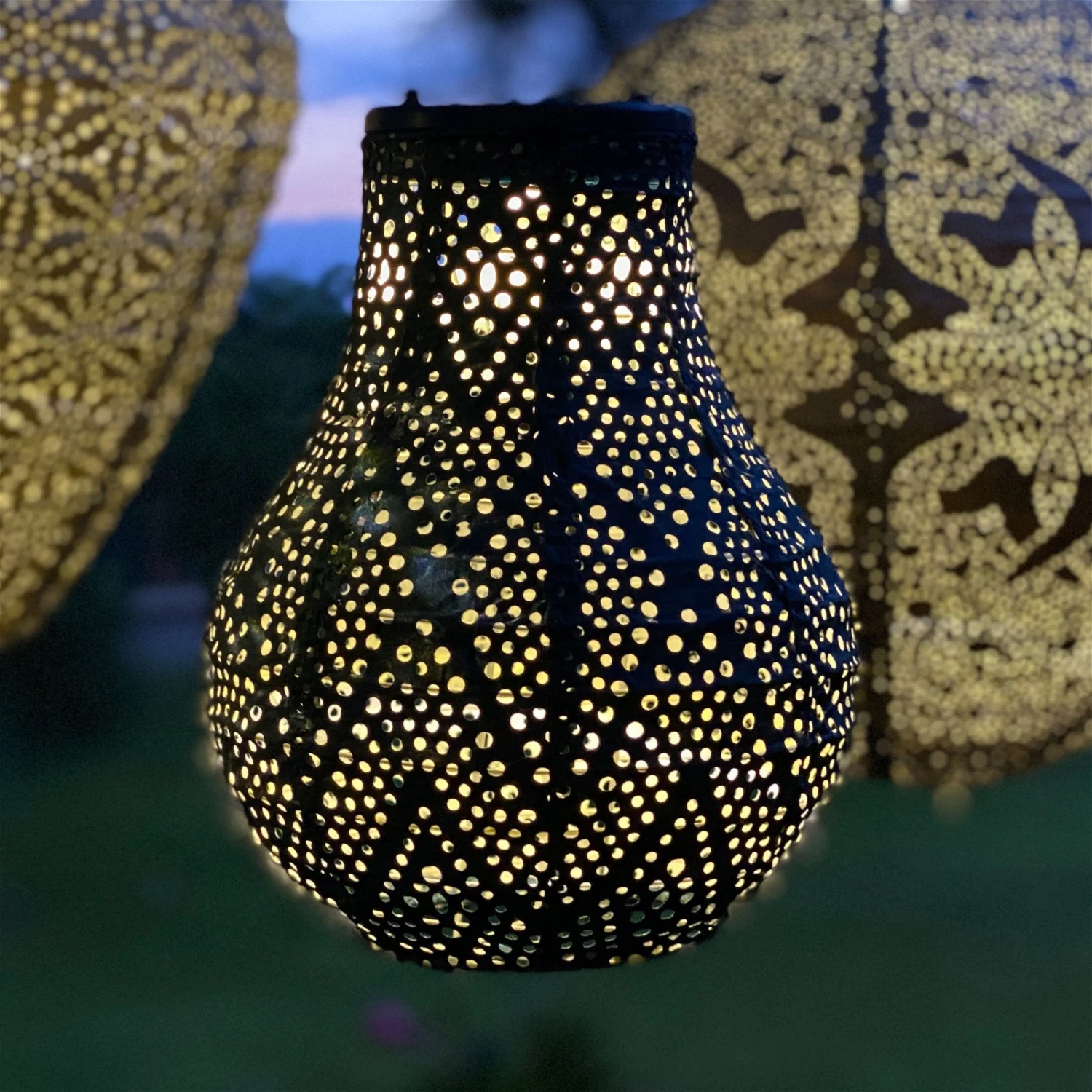Diese petrolfarbene Solarlaterne ‚Bulb 16‘ zaubert hübsche Lichtmuster auf Ihre Terrasse. Die stimmungsvollen Solarlampions schaffen ein behagliches Ambiente, in dem Sie am Abend entspannen können. Dank des strapazierfähigen Materials Tyvek R1443 PU, 43 g/qm haben Sie lange Freude an dieser 16 x 20 cm großen Laterne, die sich zum Transportieren zusammenfalten lässt.