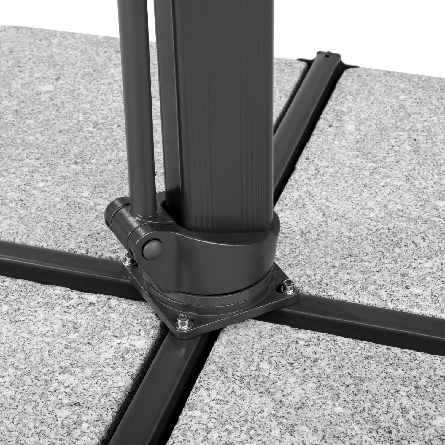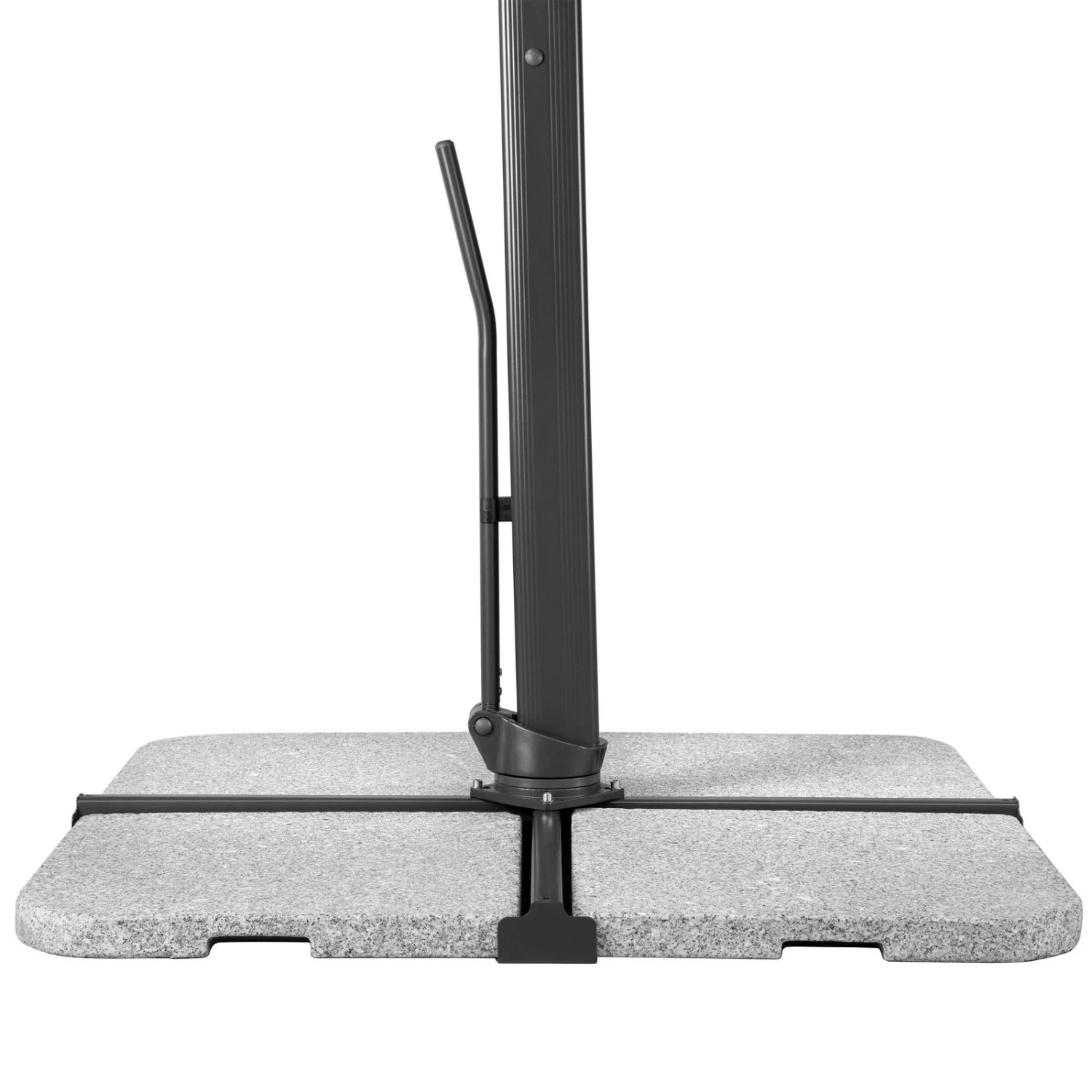 Dieser Pendelschirm überzeugt durch sein intelligentes Design und ist mit wenigen Handgriffen an den aktuellen Sonnenstand angepasst. Sie erhalten den Ampelschirm ‚Rhodos Smart‘ von Schneider Schirme inklusive eines praktischen Ständers, zusätzlich benötigen Sie Wegeplatten 50 x 50 cm. Der wasserabweisende, lichtechte Bezug lässt sich zur Reinigung problemlos abnehmen.