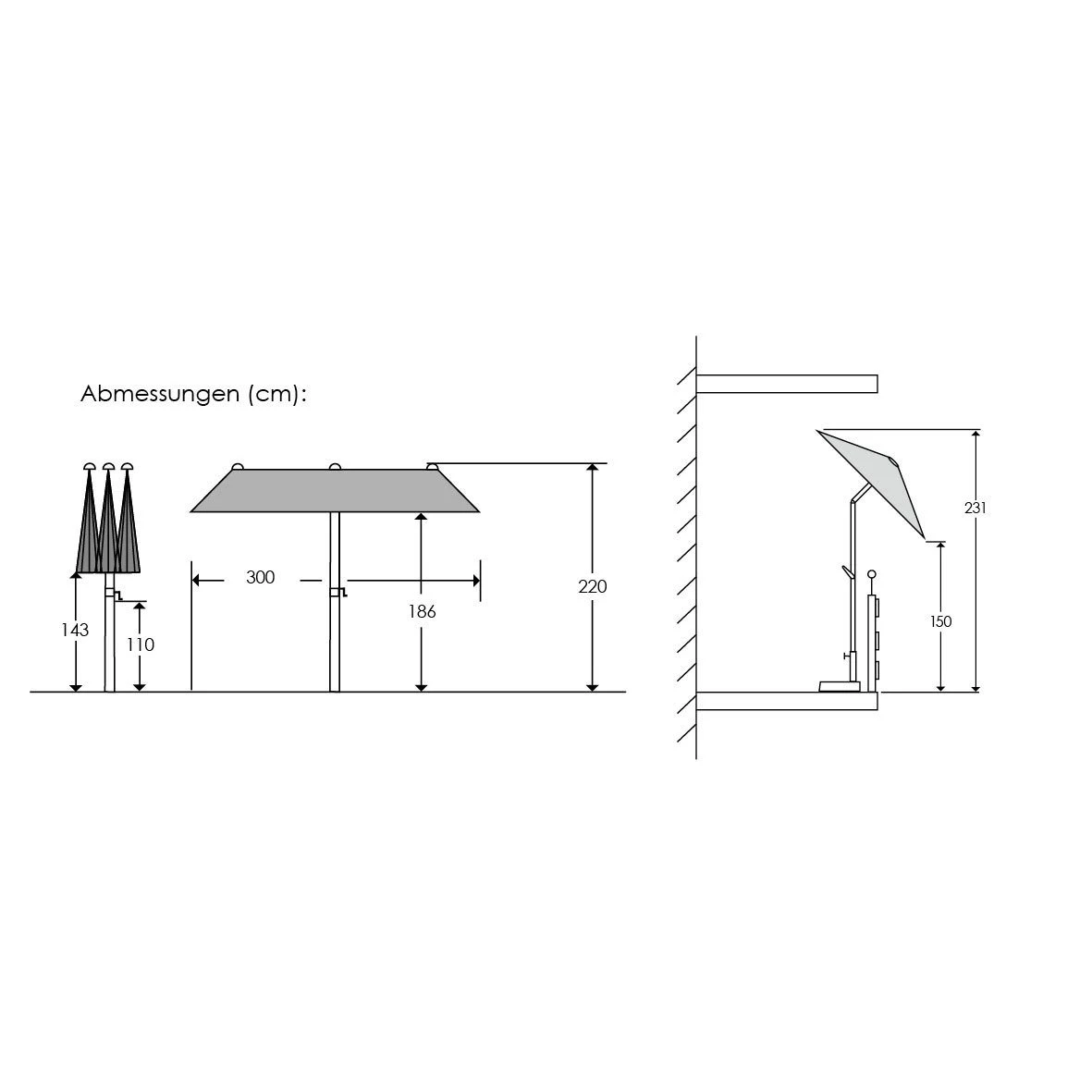 Sonnenschirm ‚Salerno‘, Silbergrau, Ca. 300 X 150 Cm