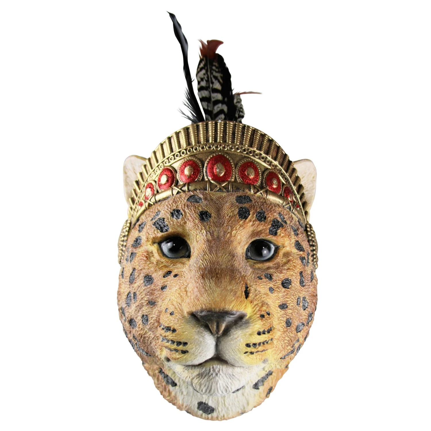 Wanddekoration Gepardkopf, Orange, Schwarz, Polyresin, 20 X 23 X 16,5 Cm